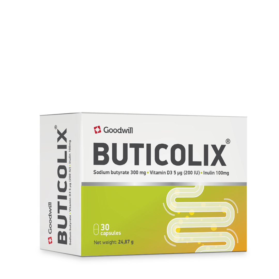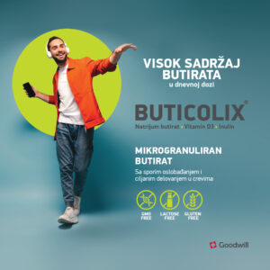 BUTICOLIX je kombinacija natrijum-butirata, vitamina D i FOS (inulina). Natrijum butirat je so buterne kiseline