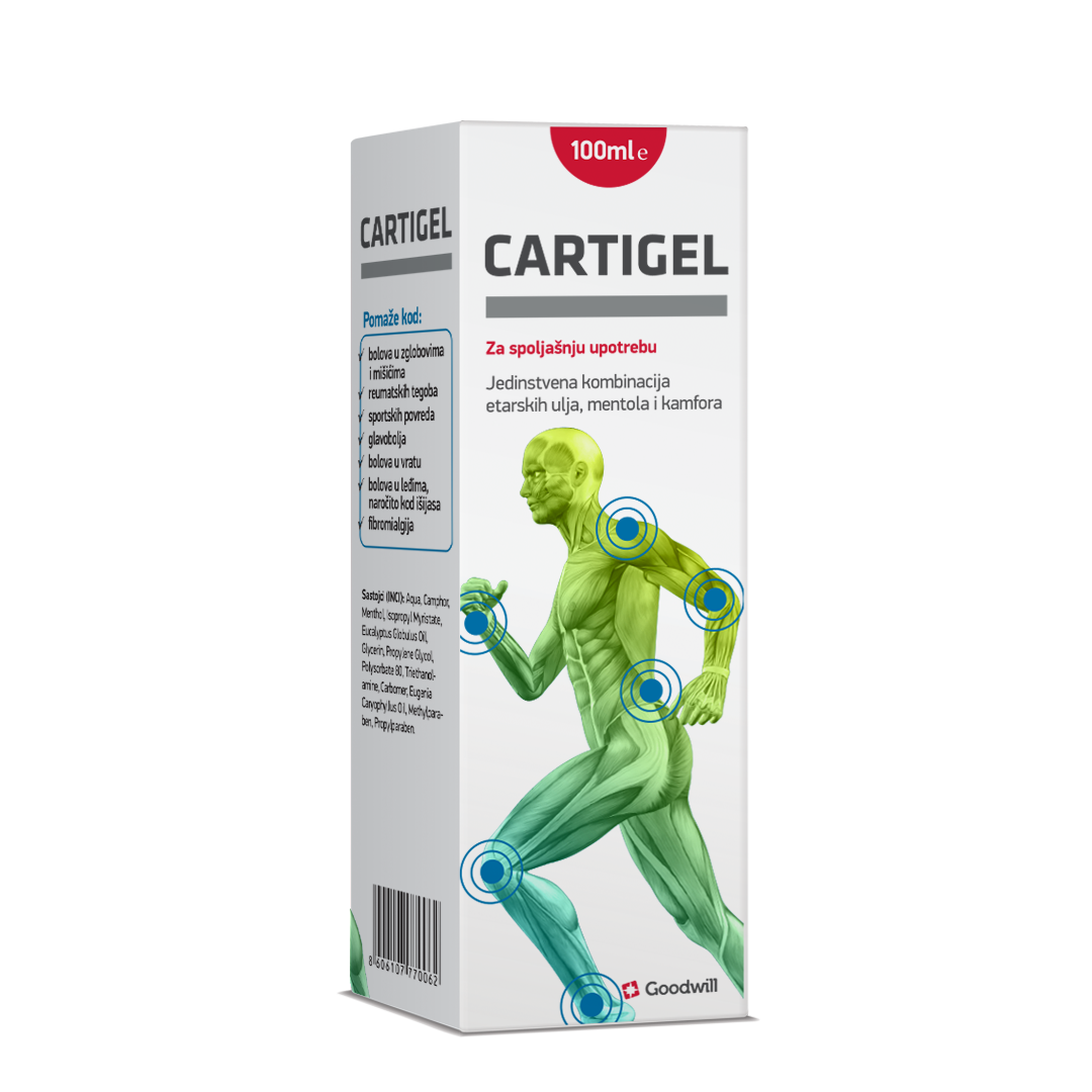 Cartigel je jedinstvena kombinacija etarskih ulja, mentola i kamfora koja pomaže kod:
