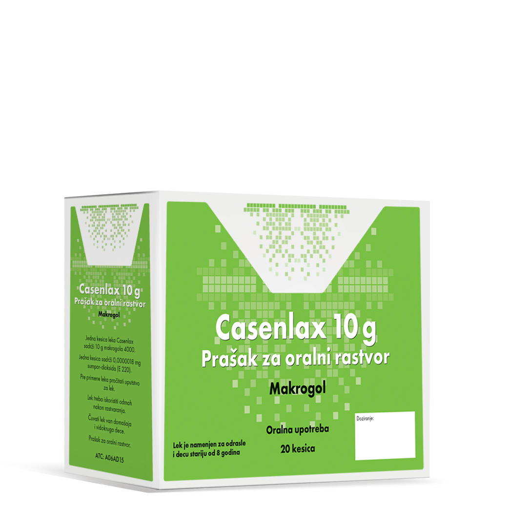 Lek Casenlax se koristi za simptomatsku terapiju zatvora kod odraslih i dece starije od 8 godina.