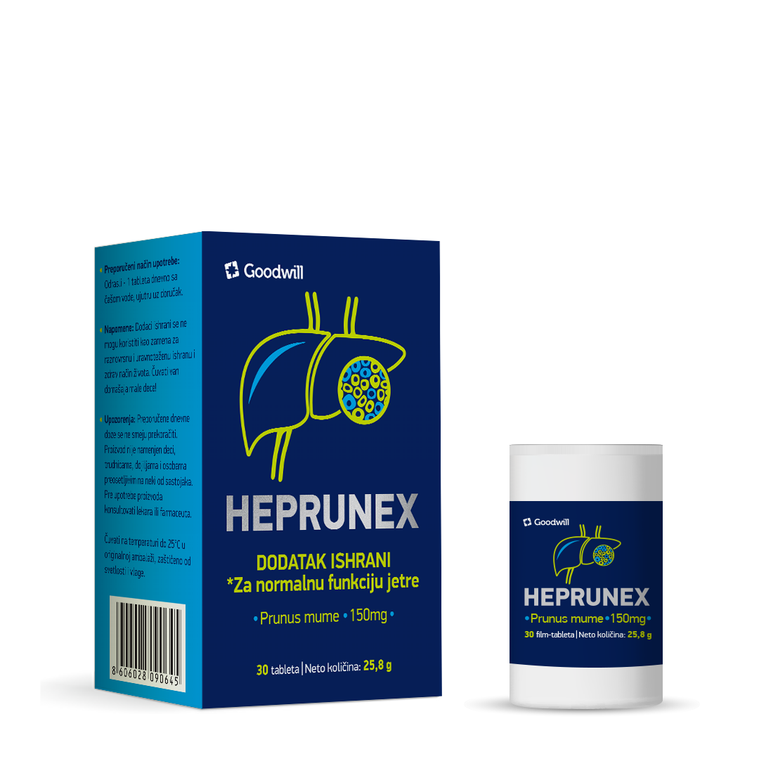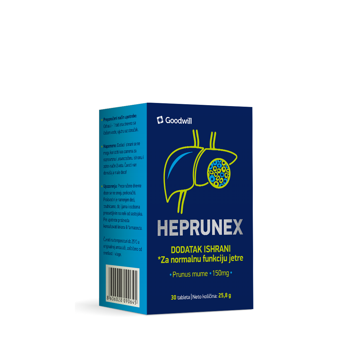 Heprunex je dijetetski suplement sa dvostrukim mehanizmom delovanja, namenjen podršci zdravlju jetre i regulaciji metabolizma masti i glukoze. Sadrži standardizovani ekstrakt Prunus mume i holin, sastojke sa klinički dokazanim efektima na jetrene enzime, masnu jetru i metaboličke parametre u praktičnom mesečnom pakovanju.