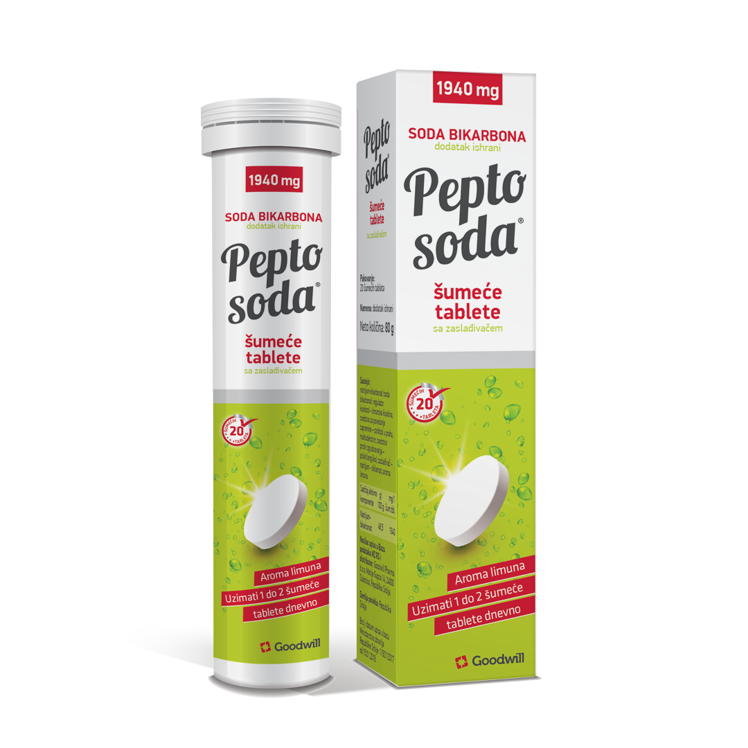 Pepto Soda je jedinstveni dodatak ishrani u vidu šumećih tableta čiji je aktivni sastojak soda bikarbona i koristi se za neutralisanje hlorovodonične kiseline u želucu. Pepto Soda doprinosi smanjenju gorušice, otklanjanju bola i drugih tegoba koji prate prekomerno lučenje želudačne kiseline.